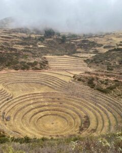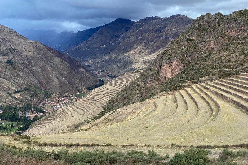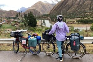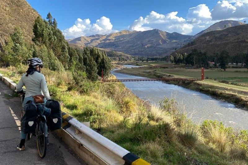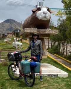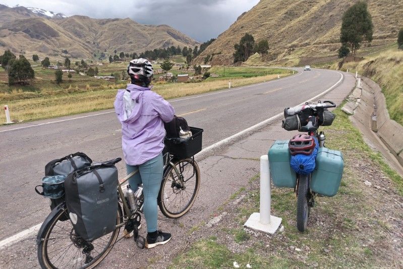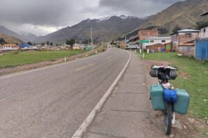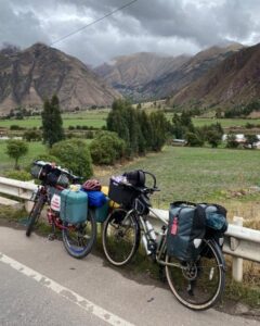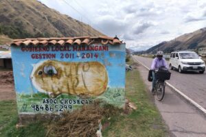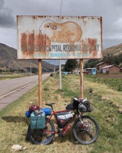 This is about as far as you can get from our cold, efficient, post-industrial modern mindset. It is my favourite part of Cusco.Qorikancha, once the spiritual centre of the Inca empire. The black blocks are the original Inca walls, carved from volcanic andesite. The Spanish later built a church on top. I guess they were trying to make a point there. Compared to the pre-inca examples above, the blocks are cut into regular, rectangular shapes, and have a repeating pattern.There are still several well preserved Inca buildings inside.The church is pretty nice too.The central plaza in Cusco. I’m a big fan of the little wooden balconies.Church in the central plaza. Out for a walk around the city. Self explanatory Chris. Terraced Inca settlement in Chinchero. These steps are purely agricultural in function. Terraces prevent the topsoil from being washed down the hillside. The Incas first filled them with a base of large rocks, for aeration and drainage, with gravel above that, before finally layering fertile soil on top. This arrangement ensured a balance of good drainage in the wet seasons, but also moisture wicking from below during dry spells. Pretty nifty technology for the period, if you ask me.Pre-hispanic greenhouse. The Incas figured out that if they constructed recessed terraces inside this natural sinkhole in the mountains it would provide a warm microclimate, which would enable the cultivation of certain crops that otherwise would not have been able to survive the conditions.Ollantaytambo. Farming terraces, storehouses, a temple of the sun, and a military complex. A battle was fought here between Hernando Pizarro and Manco Inca in 1537.Ollantaytambo, looking down the steps and into the valley. I wouldn’t want to try assaulting up this slope while getting pelted by slingstones and javelins.Inca agricultural terraces on a gigantic scale at Pisac.More Pisac.Putting a brave face on it. Raquel and I both managed to get the dreaded stomach bug AGAIN in Cusco. It turns out that it’s actually rather difficult to walk up a mountainside while trying not to poo yourself. Should have worn the brown trousers… Made it to the top! Laguna Humantay.New tent! All the zips on my old MSR Hubba Hubba NX were in various stages of failure at this point. It was time to bite the bullet. Marmot Tungsten 3 person tent. Not quite as fancy or lightweight as the old MSR, but far more spacious for two people.We brought both the bikes into a mechanic for a thorough service. I asked Miky, the owner, to check my wheel bearings. My front axle fell apart in two pieces when he removed the wheel. The only thing that had been holding everything together was the quick release scewer. I guess that I must have bashed the front wheel against something while enjoying myself too much on an off-road descent. César and his wife stopped us for a chat while we were leaving Cusco. César used to bike tour himself back in the day, but now he prefers to potter around the countryside on a small Honda motorcycle. We passed through a village that apparently only sold bread. There were about 20 or 30 bakeries. Coming across random food themed places happens a lot here in Perú. Nice countryside on the road to Bolivia. Notice how we are riding past the mountains instead of over the top of them? Makes for a nice change…We were unsure of whether we were going to get good enough visibility to see the rainbow mountain, but then this gorgeous double rainbow appeared in the sky above us. Surely a good sign? The rainbow is also represented on the flag of Cusco, and more generally represents indigenous communities all over South America. Mountain Vinicunca, rainbow mountain. … And this is what it actually looks like when you visit! For so much of our time messing around Cusco we found ourselves having to quickly leap at short windows of opportunity to pose for a few snaps, before the hordes descended upon us once again. It’s all rather stressful compared to our usual pace of travel.Back on the road again. Taking Raquel’s new camping chair for a spin. We rolled up on a completely unexpected Inca complex at Raqchi. These round houses are supposedly storehouses, not human habitations.There are 220 in total, neatly arranged in rows and columns. A map of the storehouses. A logical thinker was certainly behind this arrangement back in the day.On June 21st, the winter solstice (southern hemisphere), the sun will perfectly align with this avenue. The Incas had an agricultural calender of 13 months of 28 days, which adds up to 364 days. Day 365 was June 21st.The temple of Wiracocha. An impressive structure 14 meters high. This wall was once the central support of a long, thatched building. Sefton from Australia. He has been steadily working his way up from Buenos Aires in an indirect, zig-zagging manner for a year or so. He highly recommended Northern Argentina to us. Can’t wait!Talking about food themed regions, it looks like we found the guinea pig one. Last bit of climbing in the mountains for a long while. The top of Abra La Raya mountain pass. Goodbye Cusco. Hello Puno. Time to descend down into the altiplano and onwards to Lake Titicaca!